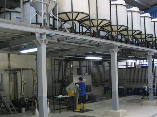 METU TEKNıK Tuz - Soda - Sülfat dozajlama ve dağıtım sisteminde dozajlama ve dağıtım sisteminde kimyasallar çözelti olarak transfer edilebilmekte olup, ihtiyaca yönelik çözme işlemi gerçekleştirilebilmektedir. Çözelti haline gelen boyalar, Tek Hatlı dağıtım yolu ile transfer edilmektedir. Tuz/Soda Çözme Sistemi bir işletmenin günlük ihtiyacı kadar olan katı tuzun, paslanmaz çözme tanklarında su ilave edilerek doymuş bir çözelti haline getirilmesi işlemidir. Doymuş çözelti haline gelen sıvı tuz veya soda, stoklanacağı tanka transfer edilir, ardından Profix-S dağıtım ünitesi vasıtasıyla ihtiyaca yönelik otomatik olarak boyama kazanlarına iletilir.